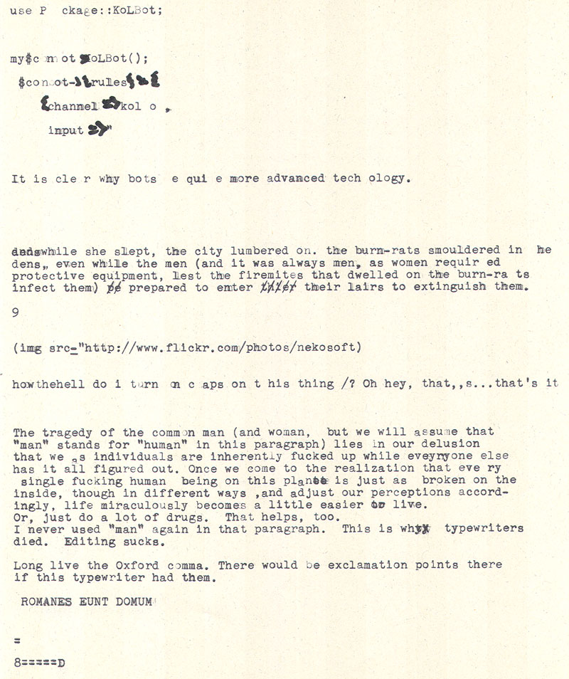 Date: September 17, 2010 Location #1: Dave & Buster's - Official First Event Location #2: Undisclosed Location, private clan party Weapon of Choice: 1947 Royal Quiet De Luxe Weapon of Choice: 1956 Smith-Corona Skyriter