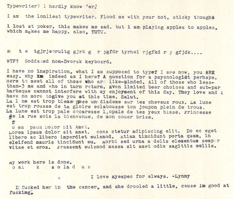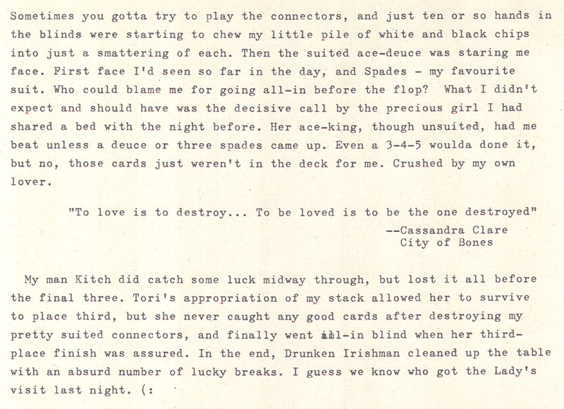 Date: September 18, 2010 Location: 12 West Main - Barbeque and Poker Tournament Weapon of Choice: 1956 Smith-Corona Skyriter Weapon of Choice: 1964 Hermes 3000